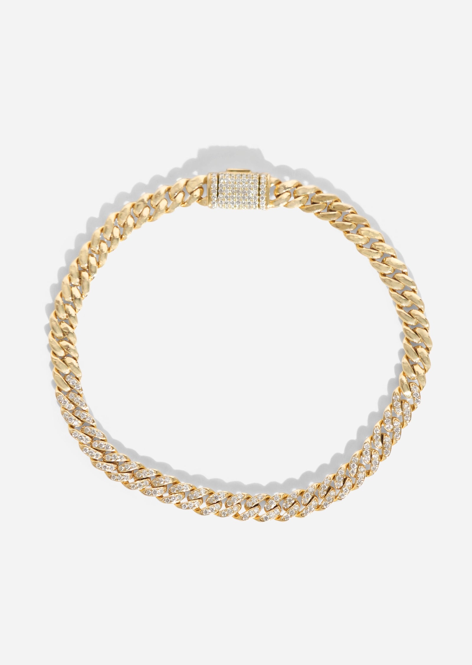 Your wrist's new signature. The Diamond Curb Chain Bracelet is the perfect extension of our iconic necklace—stackable, wearable, and made to shine on repeat. With over 200 hand-set natural diamonds, this forever piece delivers timeless curb chain styling with everyday brilliance.