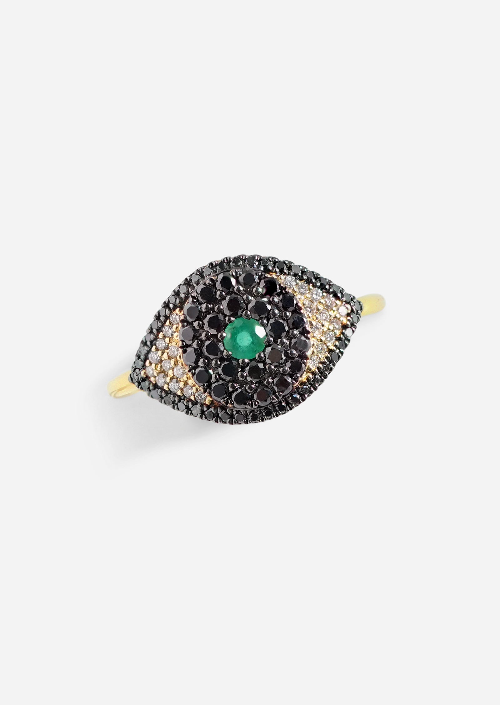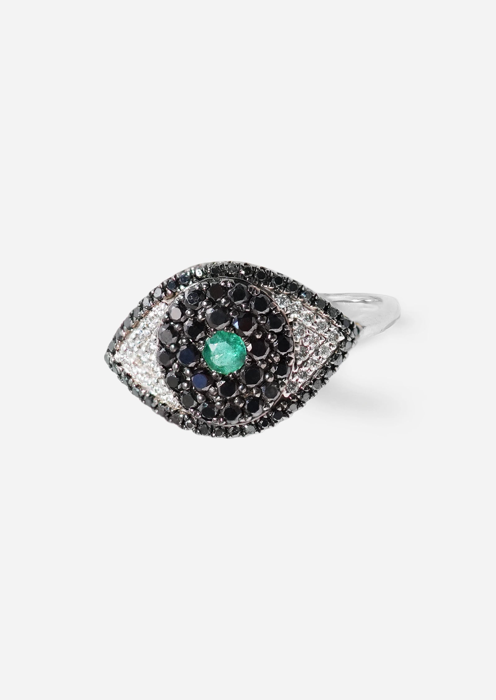 Evil Eye Protector Ring - Black Diamond + Emerald