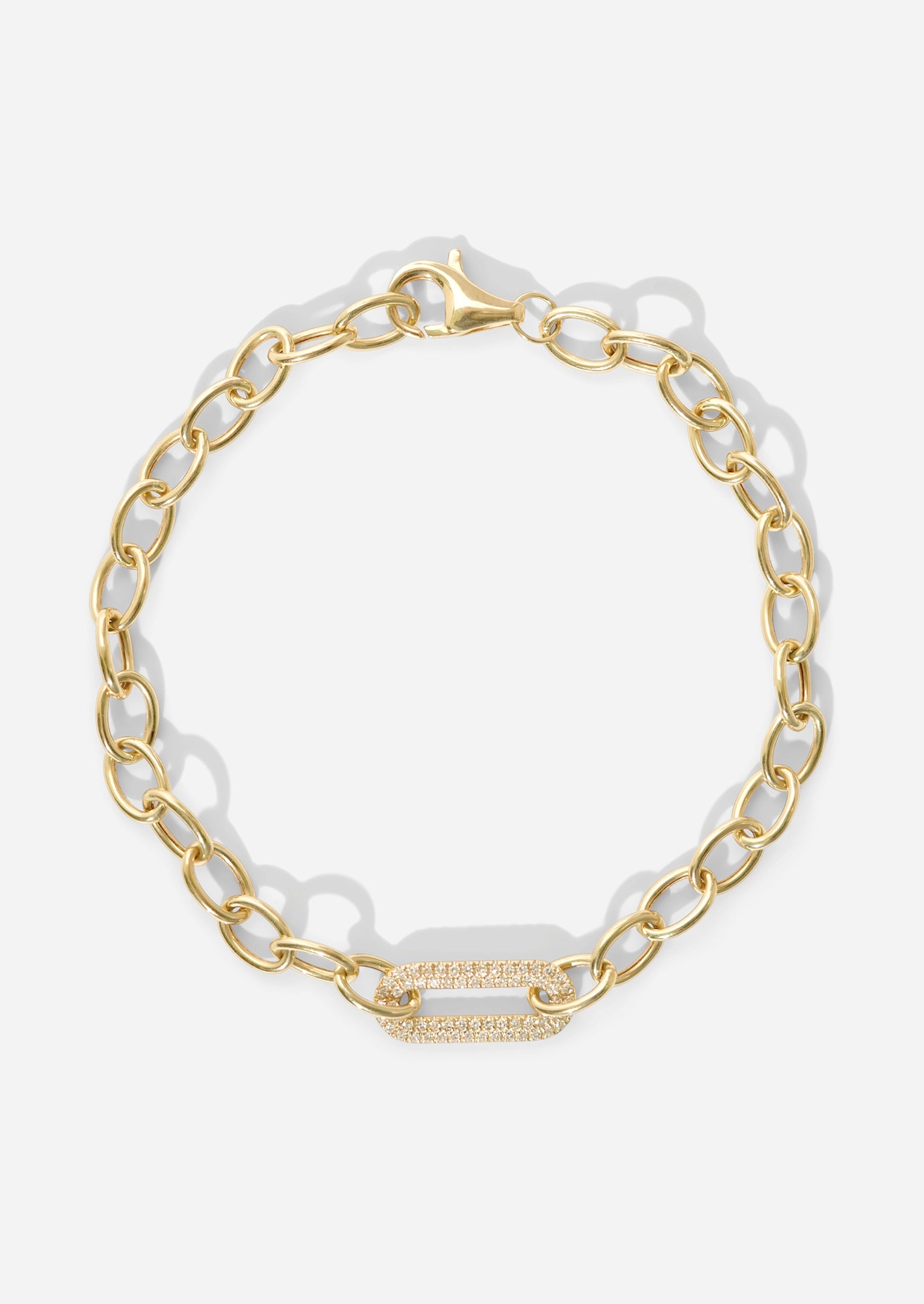 An everyday chain with a twist. Oversized oval links lead to a staple-shaped centerpiece set with pavé diamonds—designed to anchor your charm story.