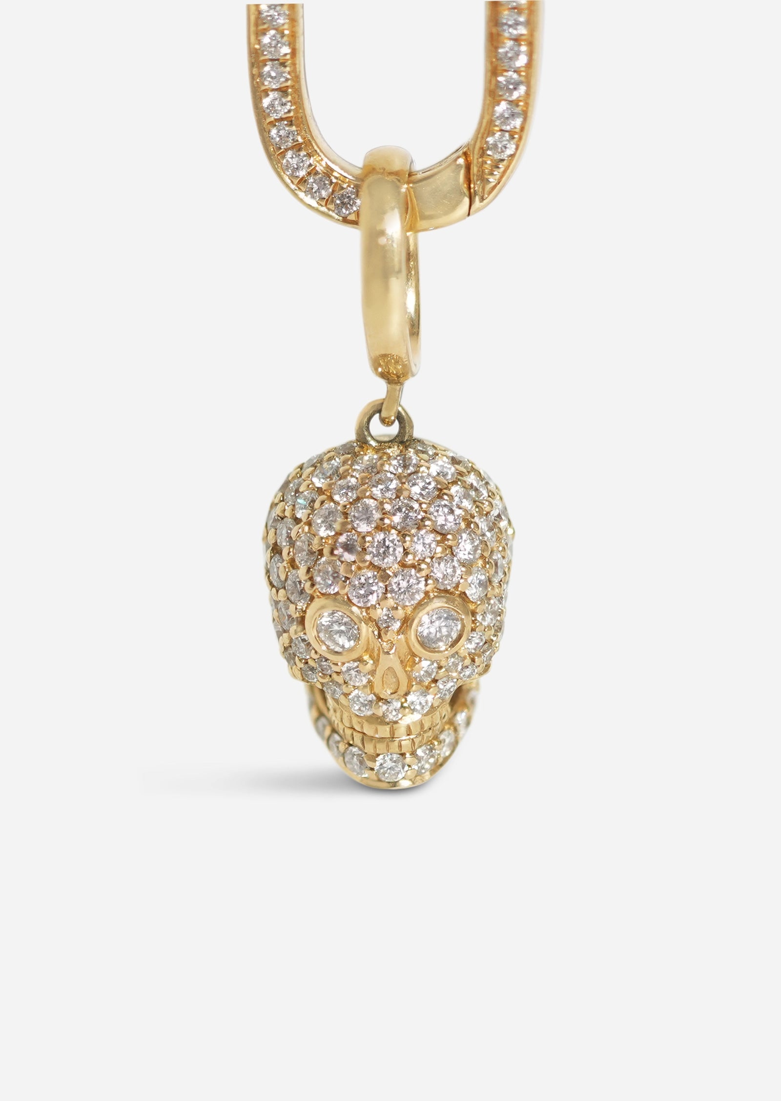 The Duat Skull Charm captures the ancient Egyptian concept of the afterlife with a pavé diamond-encrusted skull in 14k gold, featuring an articulated jaw that moves to symbolize the passage between worlds. This powerful amulet pays homage to the Egyptian belief in eternal life, where the Duat—the realm of the dead—was not an end, but a transformative journey toward immortality. Add this charm to your favorite necklace or hoop earring.