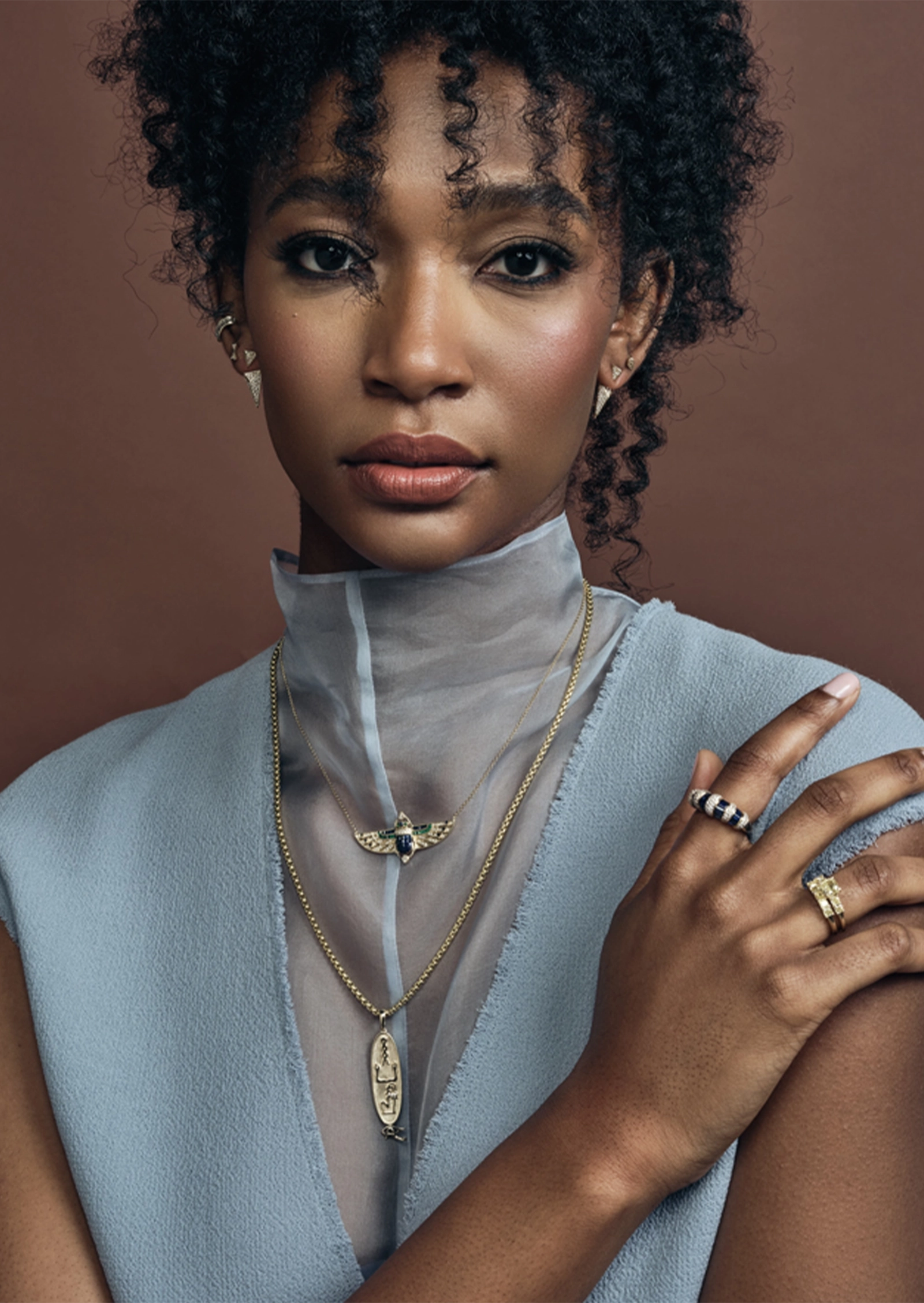 The Heka Cartouche Charm honors the ancient Egyptian concept of magic with an elongated oval pendant in 14k gold, featuring sacred hieroglyphs and crowned with the Eye of Horus set with a black diamond. This mystical piece captures the essence of "heka"—the divine force of magic that the Egyptians believed flowed through all things—with delicately engraved symbols accented by a white diamond "necklace" that tells a story of ancient power and protection.