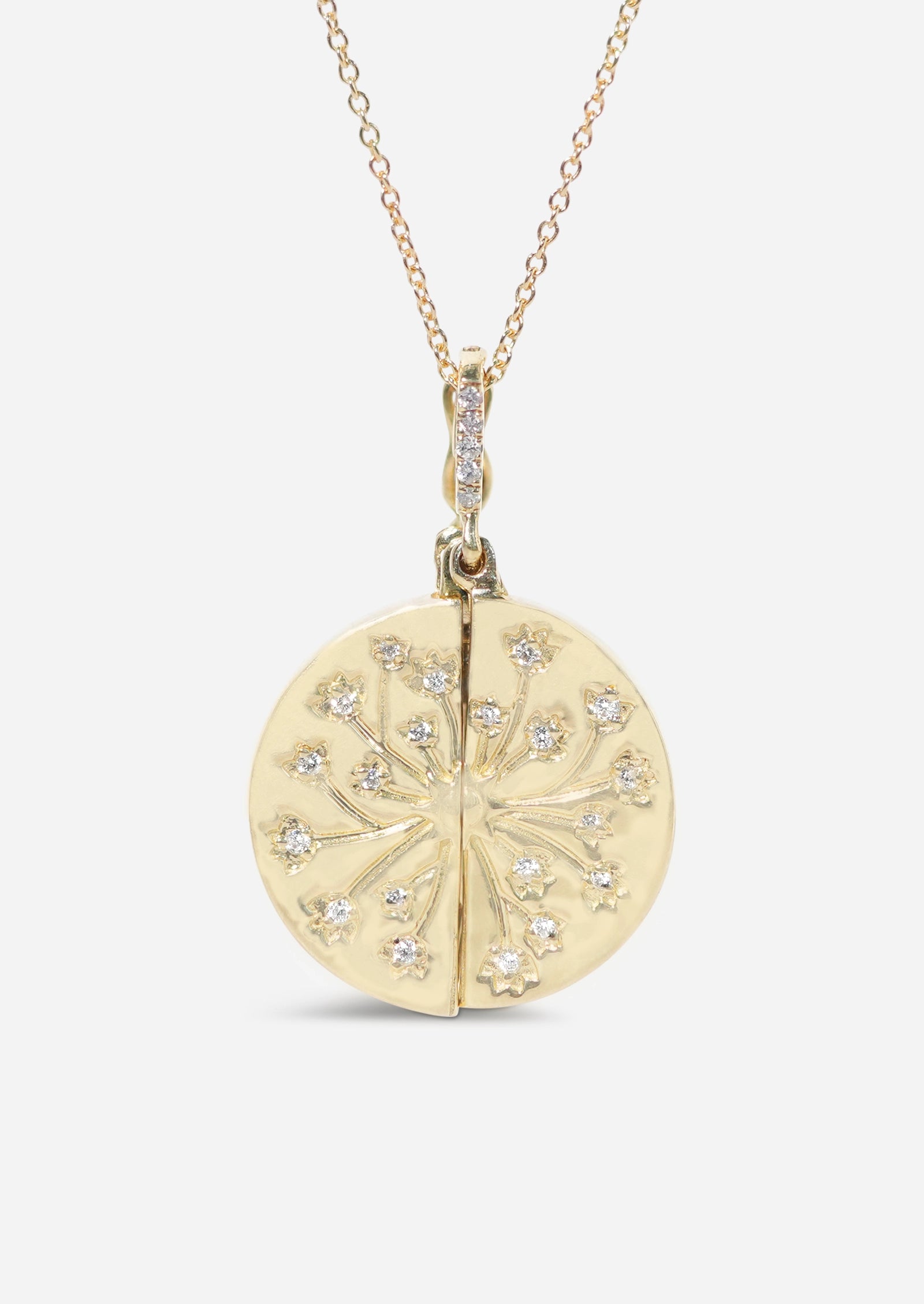 A wish kept sacred, this diamond dusted dandelion blooms open to reveal Tes Souhait, a whispered promise between you and the unseen.