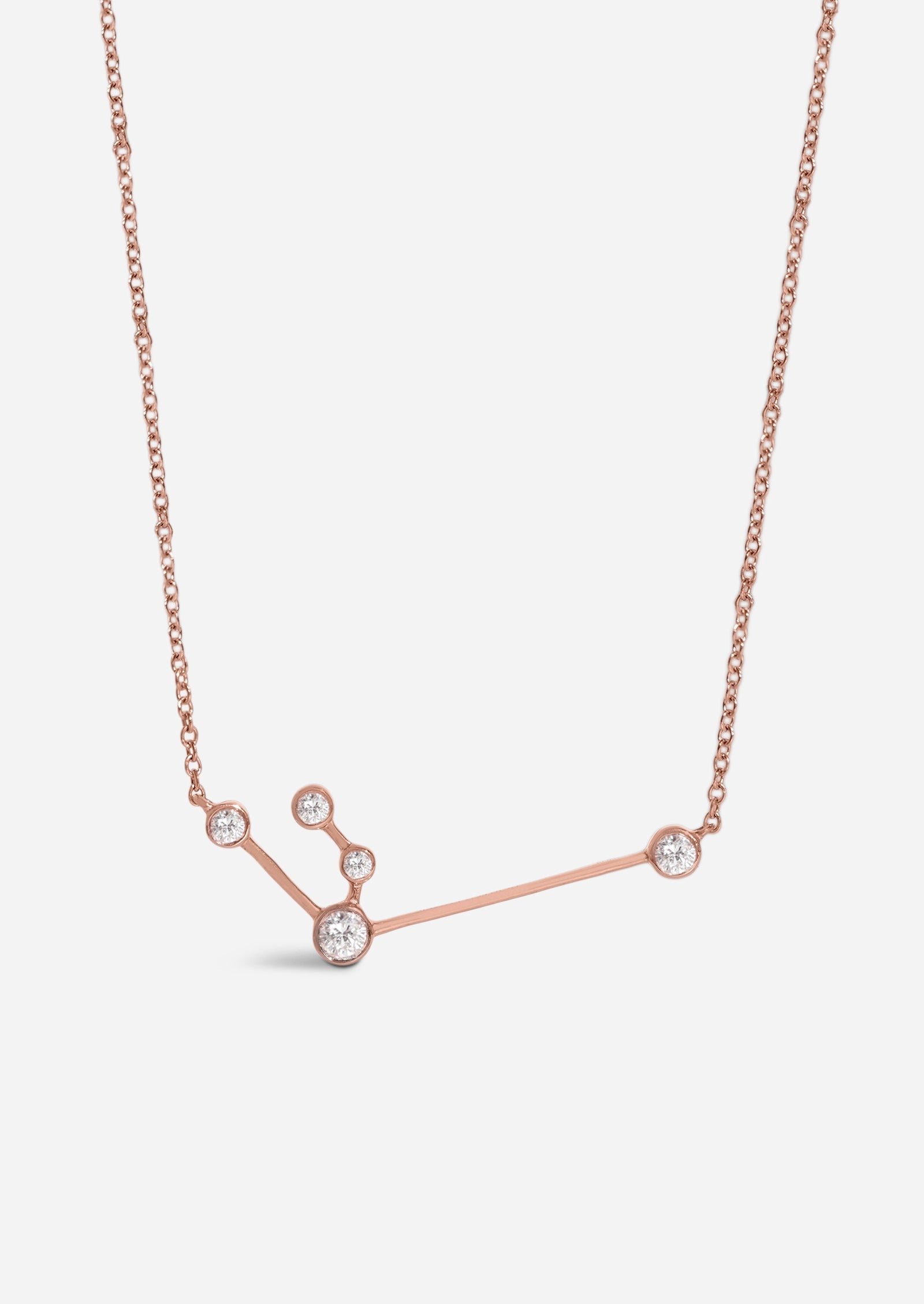 The Aquarius Zodiac Necklace features a scattered arrangement of floating diamonds in varying sizes, bezel set in solid 14K gold, which float to form the constellation: the water-bearer. Wear it on its own, or as the anchor for your layering necklaces.