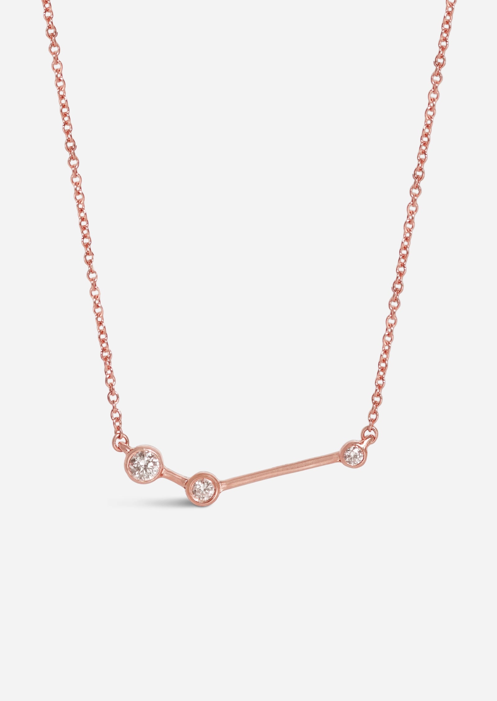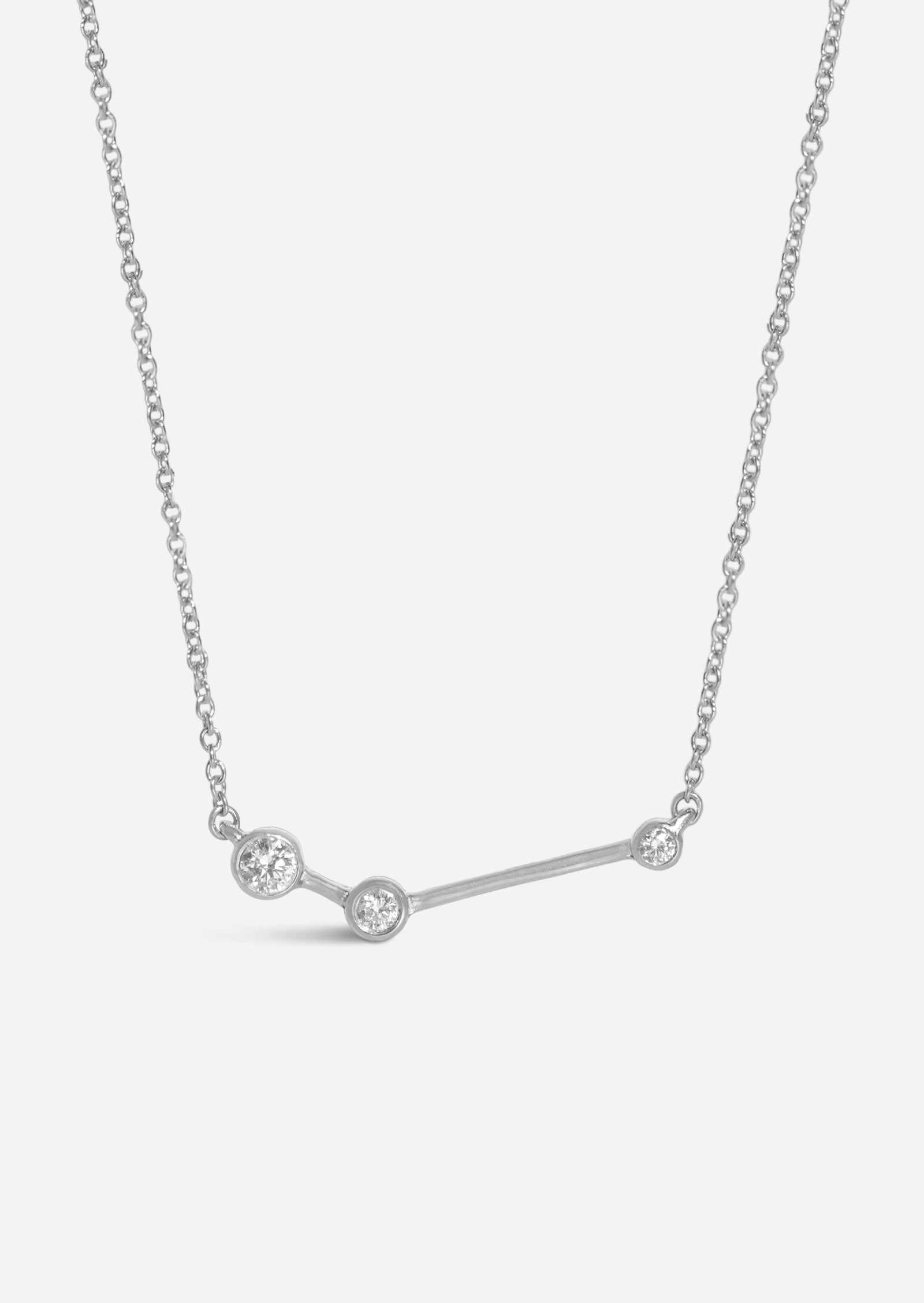 The Aries Zodiac Necklace features a scattered arrangement of floating diamonds in varying sizes, bezel set in solid 14K gold, which float to form the constellation: the ram. Wear it on its own, or as the anchor for your layering necklaces.