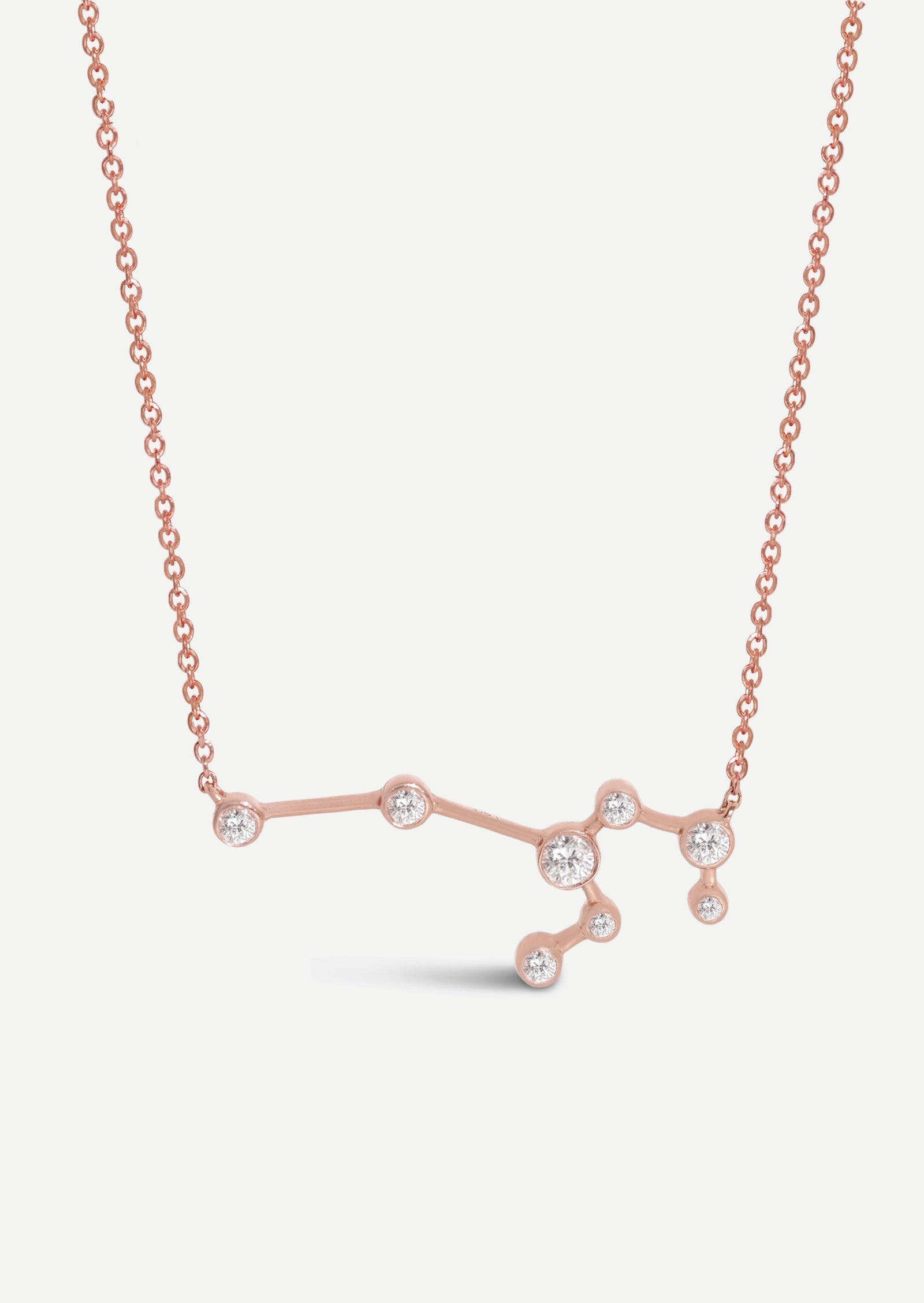 The Leo Zodiac Necklace features a scattered arrangement of floating diamonds in varying sizes, bezel set in solid 14K gold, which float to form the constellation: the lion. Wear it on its own, or as the anchor for your layering necklaces.