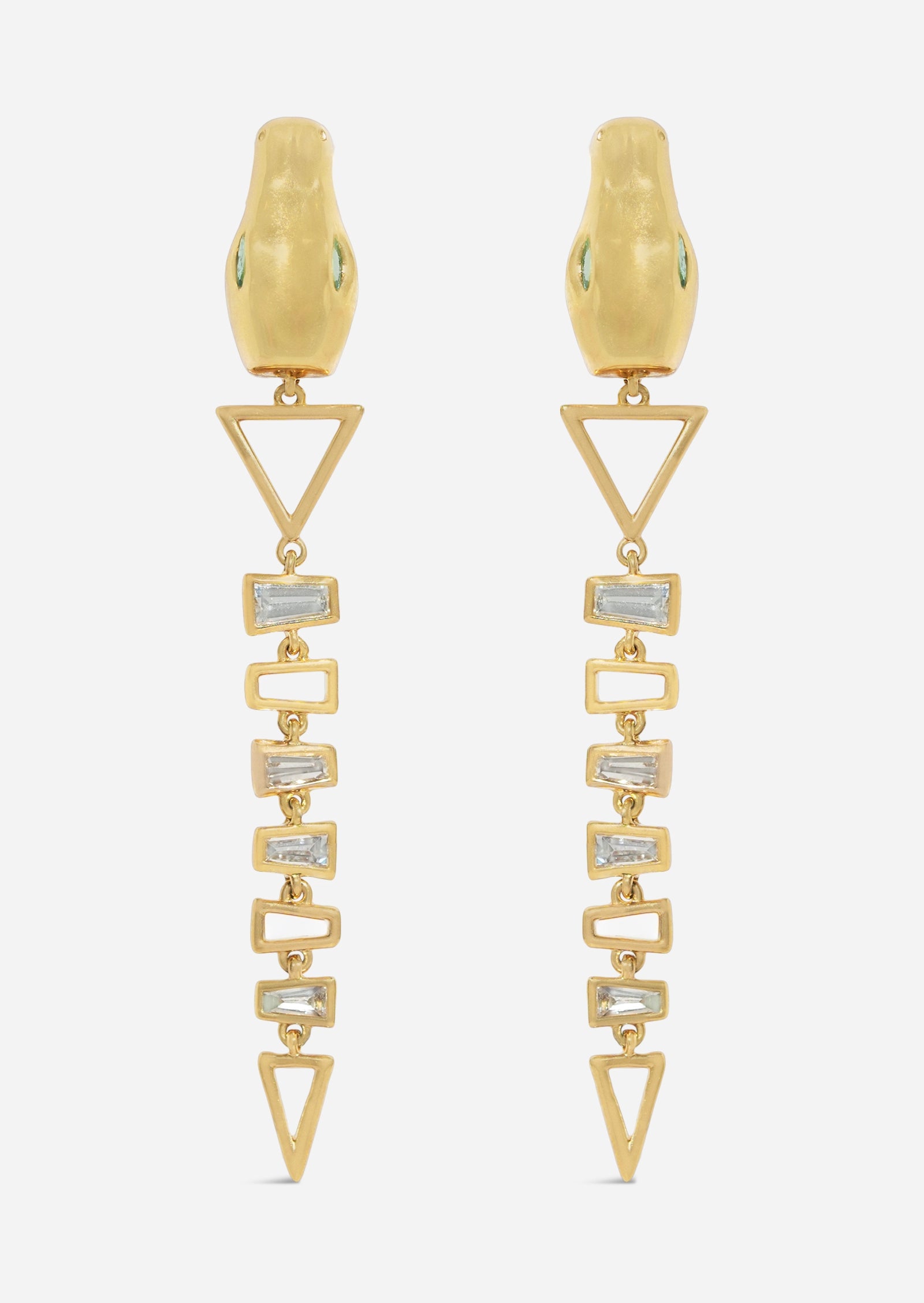 These earrings bring the mystique of the Nile to life with a luxurious, modern edge. These earrings feature a crocodile head that gracefully dangles from the earlobe, set with shimmering tapered baguette diamonds for a sleek, refined brilliance. The versatile design includes a traditional friction back, allowing the earrings to be looped into a hoop silhouette for an alternative look.