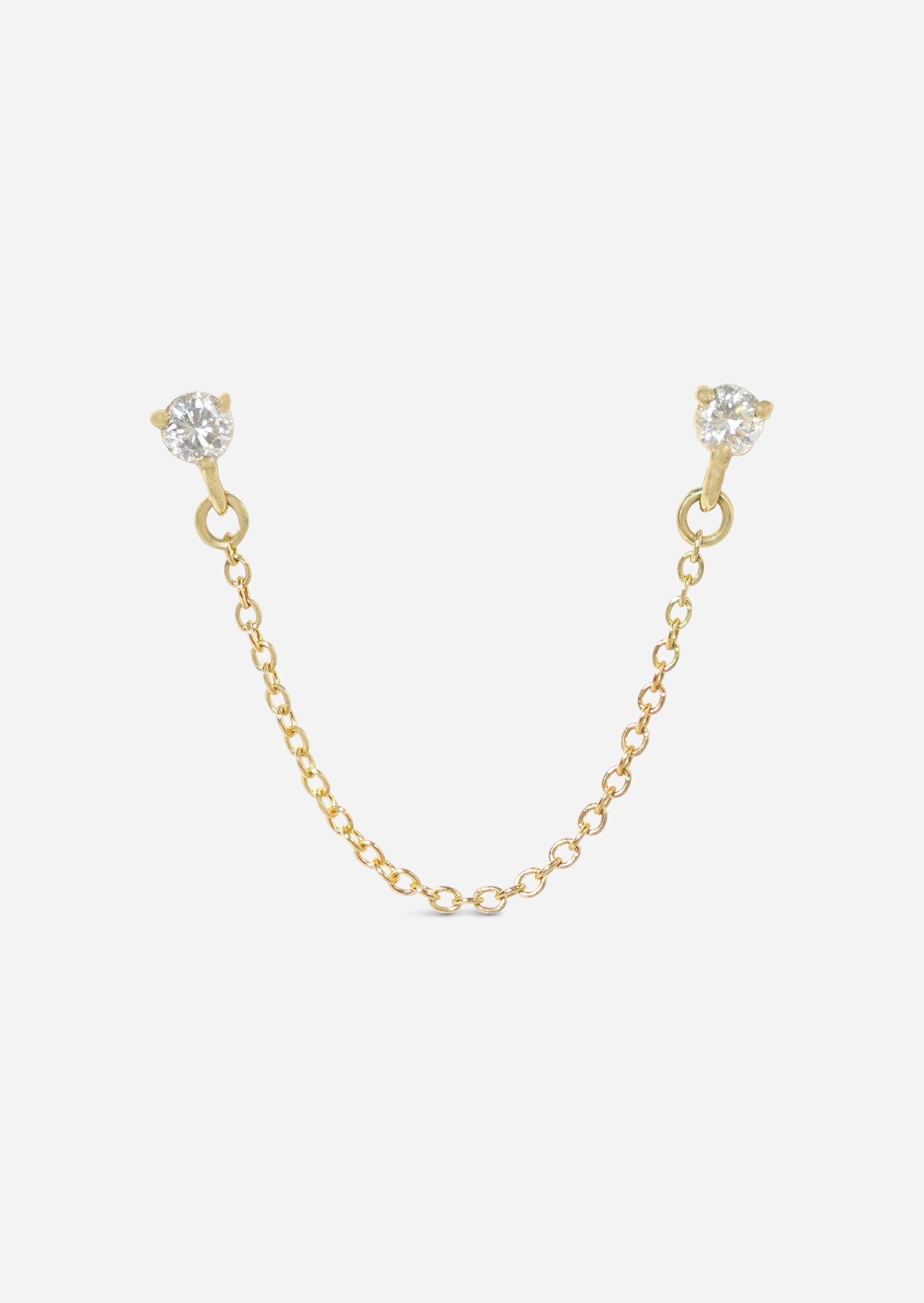 Two is better than one! This earring features two diamonds joined together by a chain. Double piercings needed.