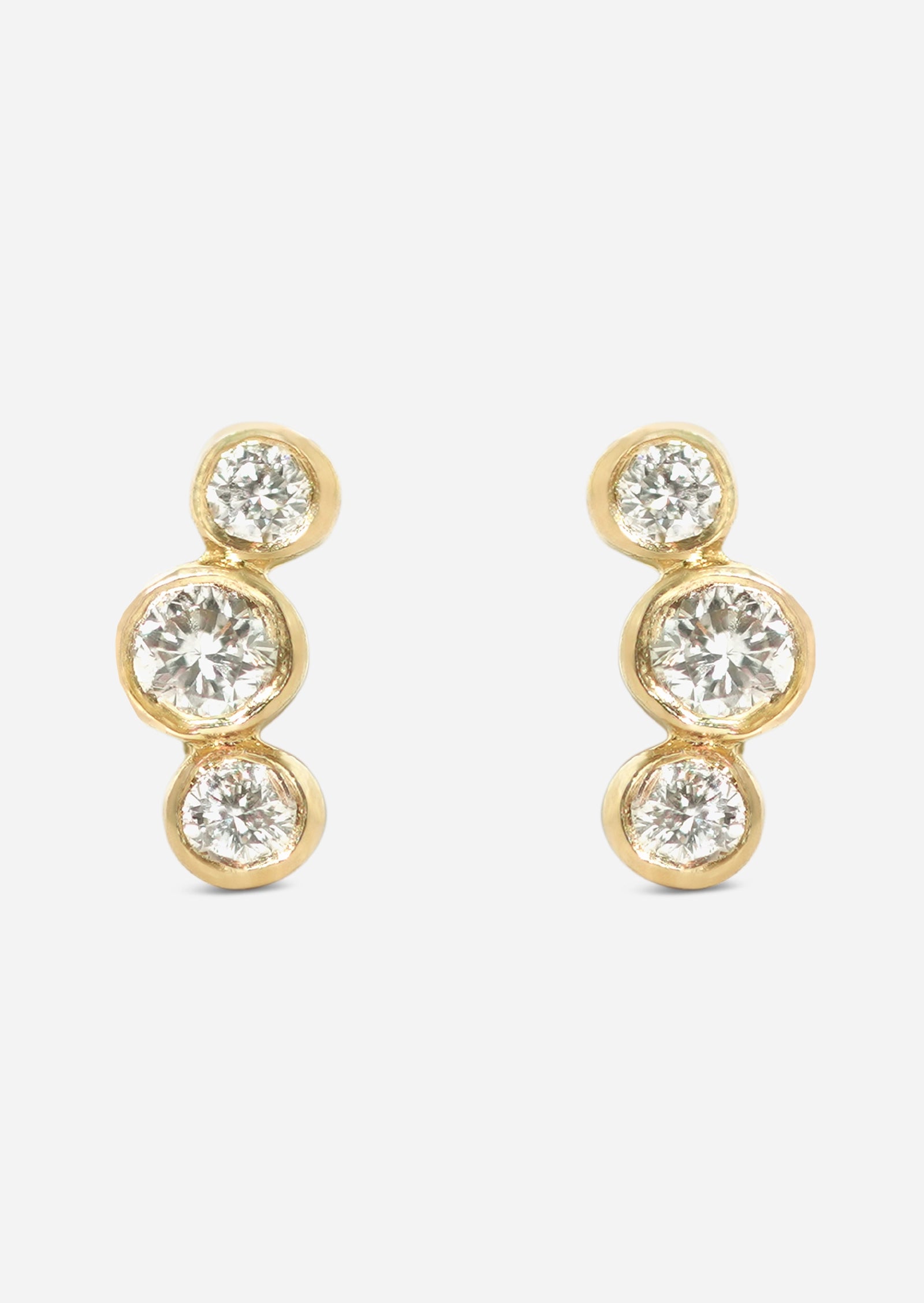 An open curve three diamond stud with our signature evil eye threader flat back. The perfect dainty addition to your ear party to leave in and never take out. We love wearing this piece in the helix/cartilage, conch, and upper lobe piercings.