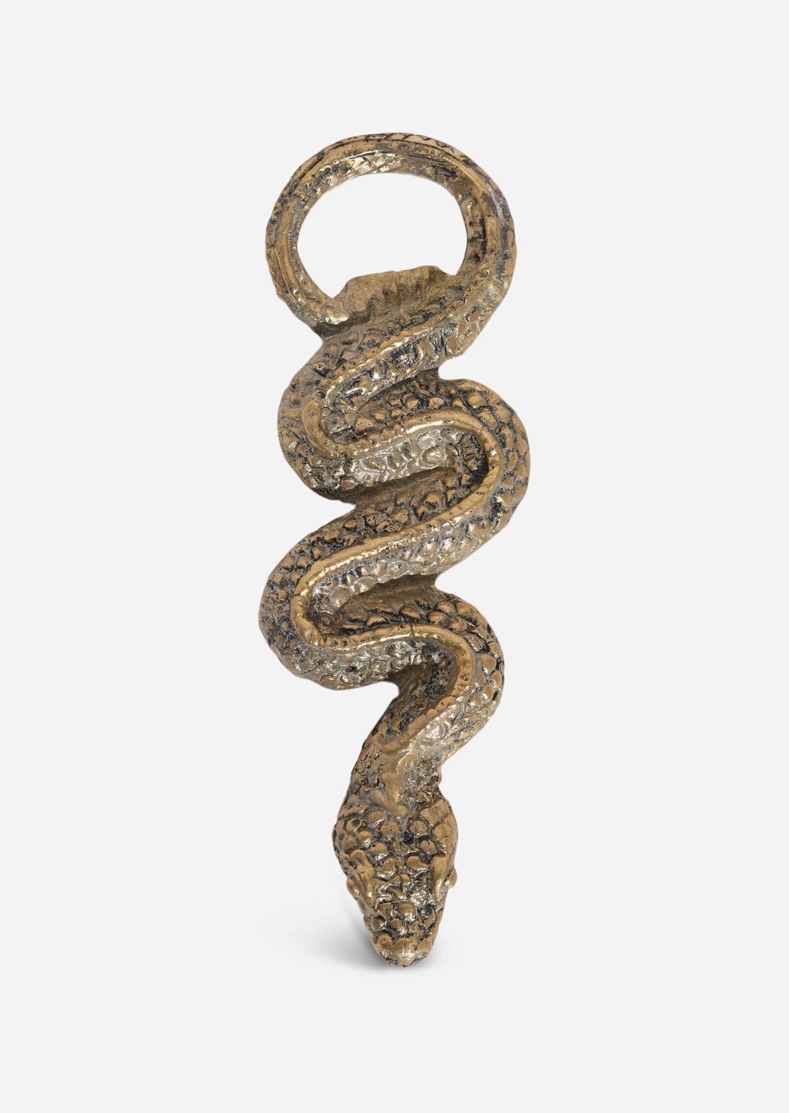 Our Snake Brass Bottle Opener pops bottle tops off with its intricately detailed tail. Finished by hand, brushed brass takes shape as a coiled serpent, adding an edgy, sculptural touch to your barware collection. Equal parts functional and conversation-worthy, this piece makes a unique gift for the host—or a statement addition to your own bar cart.