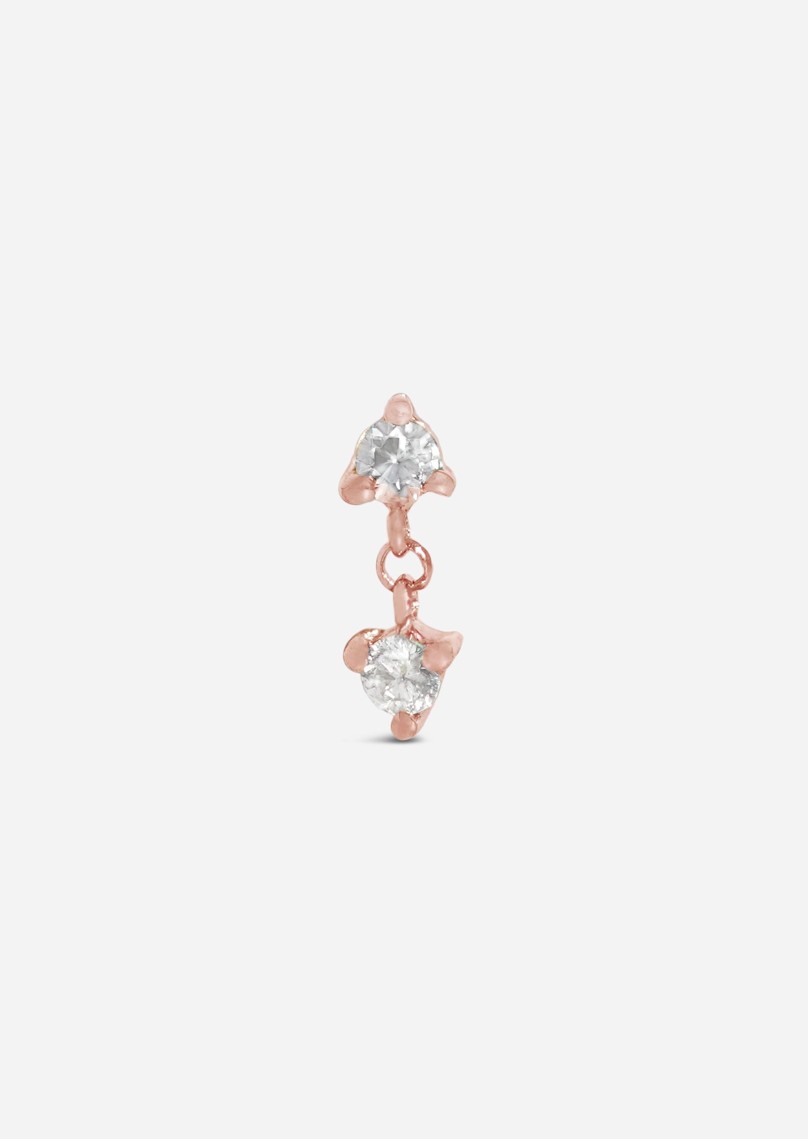 Double Diamond Drop Threaded Flat Back Earring | Single