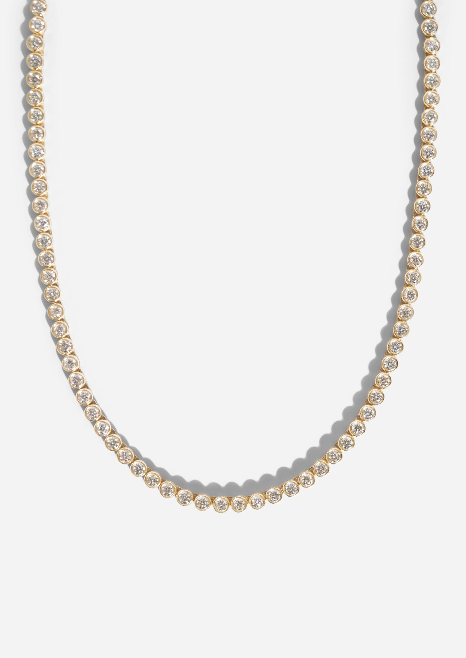 131 round set bezel diamonds make a timeless piece guaranteed to become an heirloom for generations to come. Upgrade any necklace stack or wear it solo for endless sophisticated shine like no other.