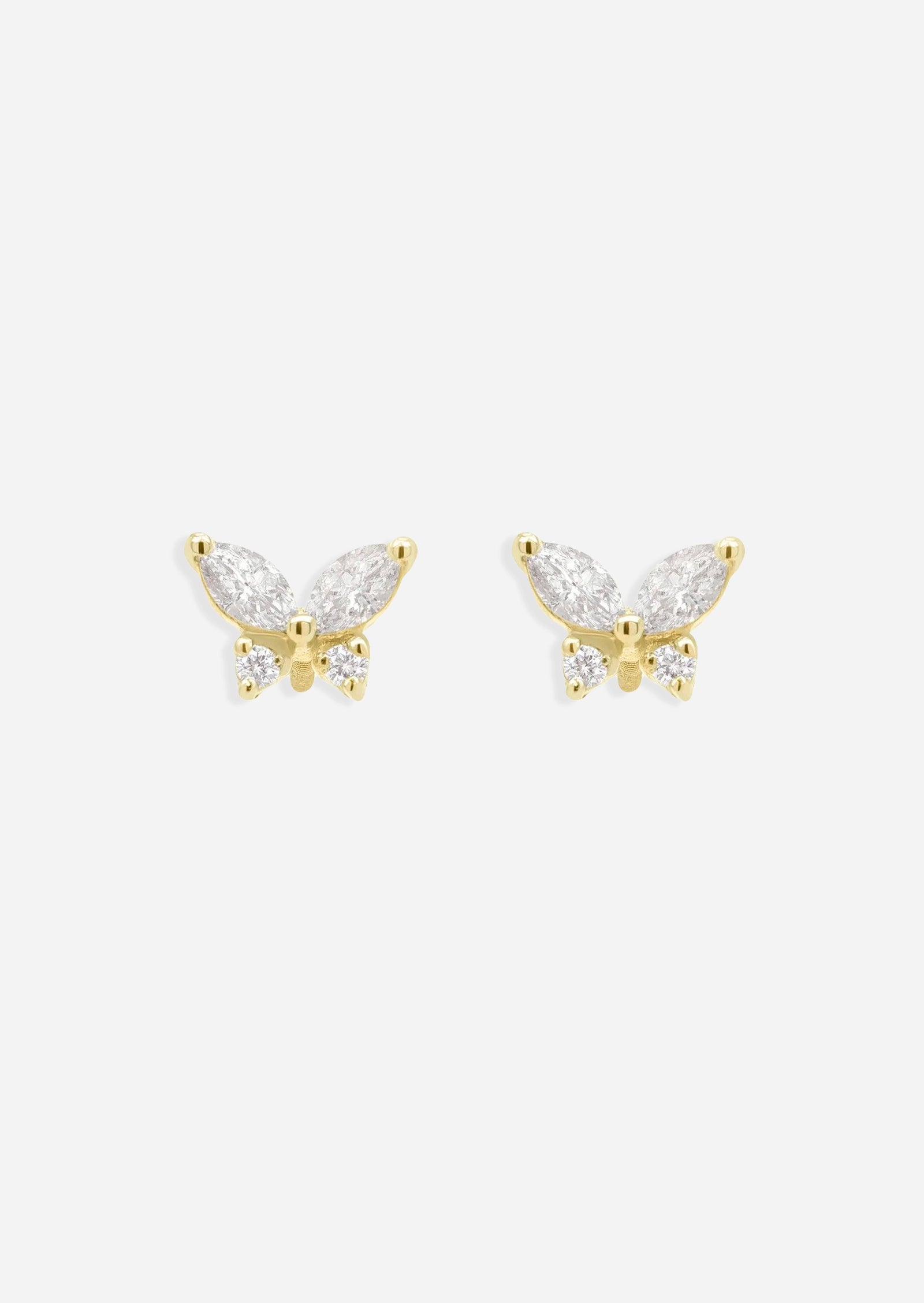 Transform into your highest self. A delicate butterfly stud with prong-set marquise and round diamonds with our signature evil eye threaded flat back for comfort and daily wear.