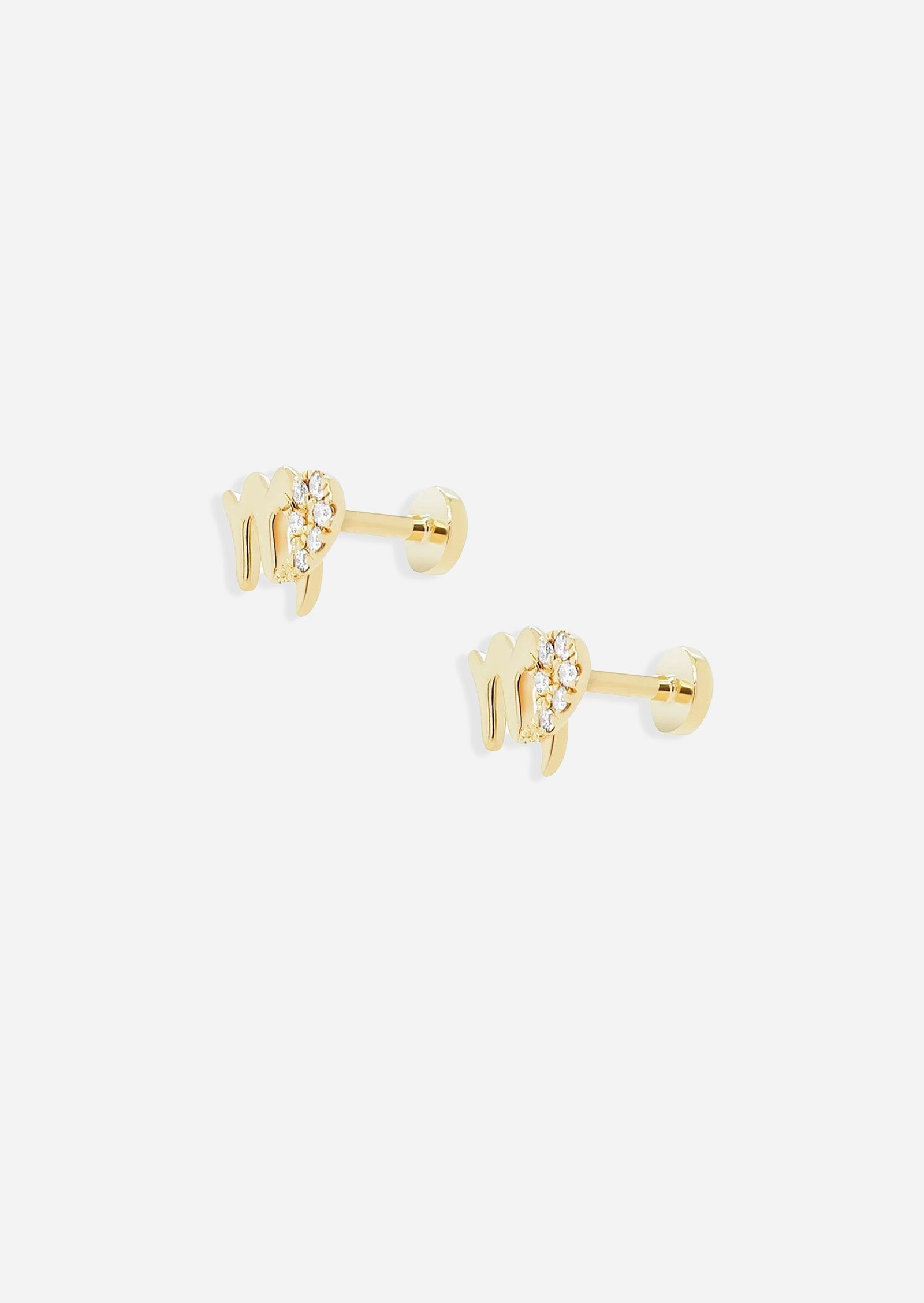The Virgo stud features diamonds intricately set in solid 14K gold to form its zodiac symbol: the maiden. Shine with your sun sign, or build an ear stack with your moon + rising. We love wearing this piece in the upper lobe, helix, or flat piercings. Designed with our signature evil eye threaded flat back for extra comfort and daily wear.