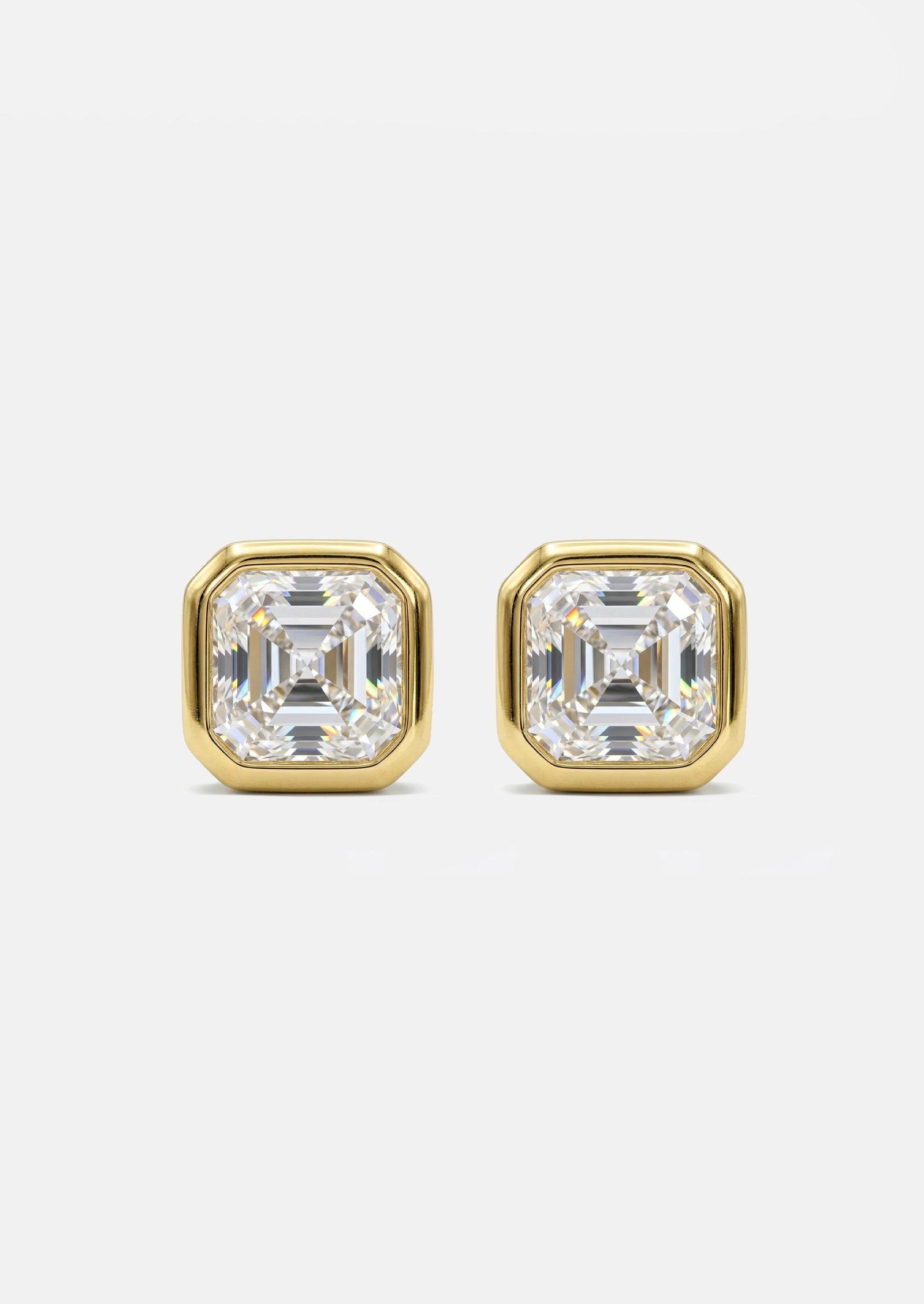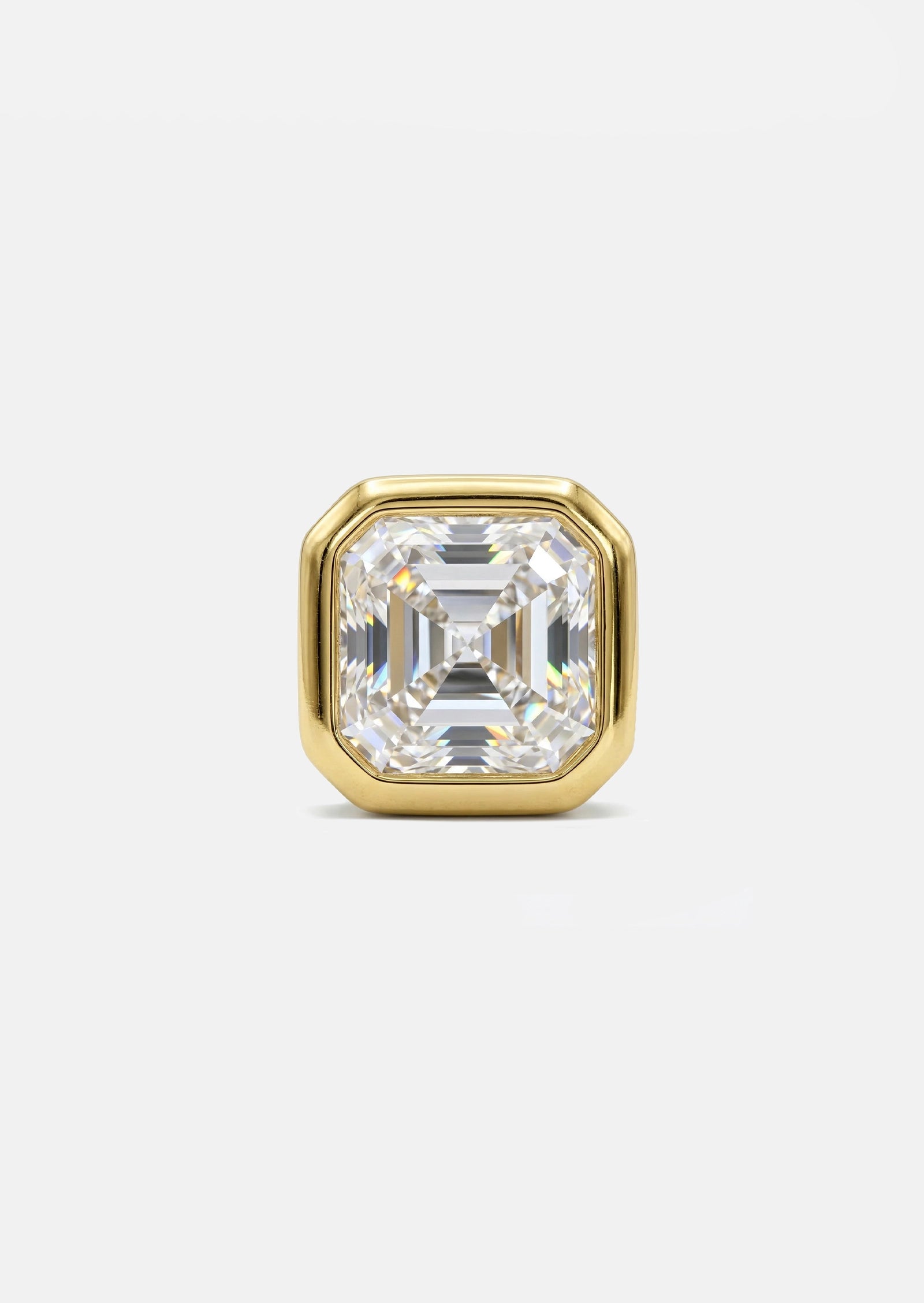 We adore an Asscher cut diamond. Bezel-set in yellow gold, this limited edition earring is a unique upgrade from your classic diamond studs. The elongated facets on an Asscher cut diamond give this piece extra shine and brilliance. We love wearing this small but mighty stud in a flat, upper lobe, or stacked piercing.