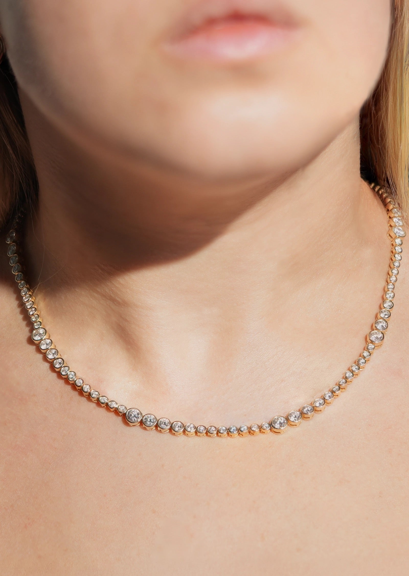 114 round graduating bezel diamonds upgrade a classic tennis necklace in true Porter Lyons fashion mastering the uncommon.