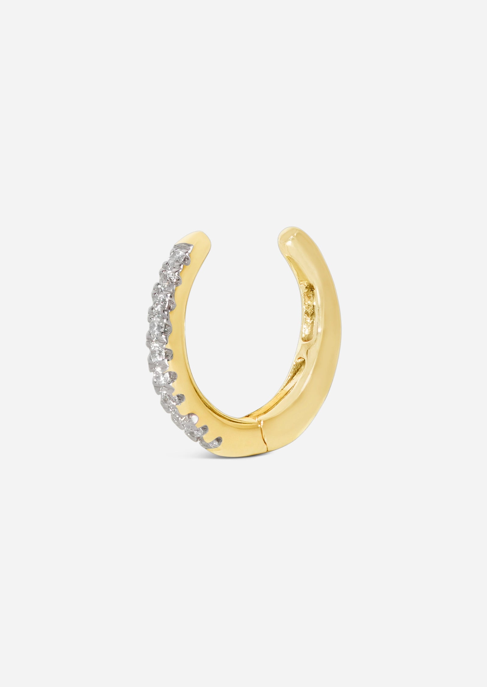 Our classic Diamond Ear Cuff is a true charmer. Designed with a hinge closure for comfort and support, you don't need a piercing to join this party. Fits snuggly around most conches.