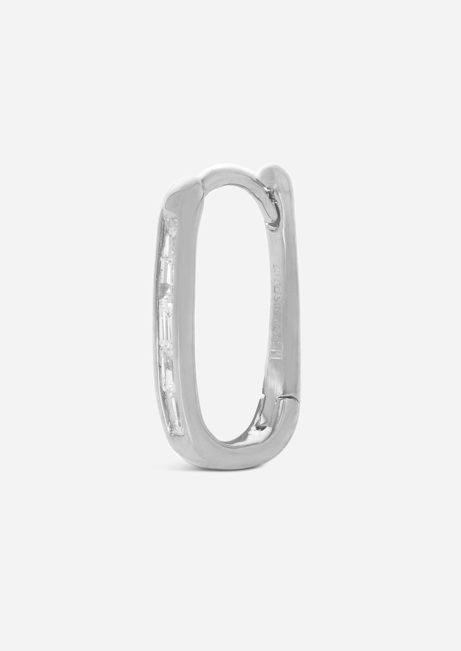 Our best selling oval hoop just got better – we sprinkled it with baguette diamonds. Elevate your look with this hoop in your first hole or upper helix piercing.
