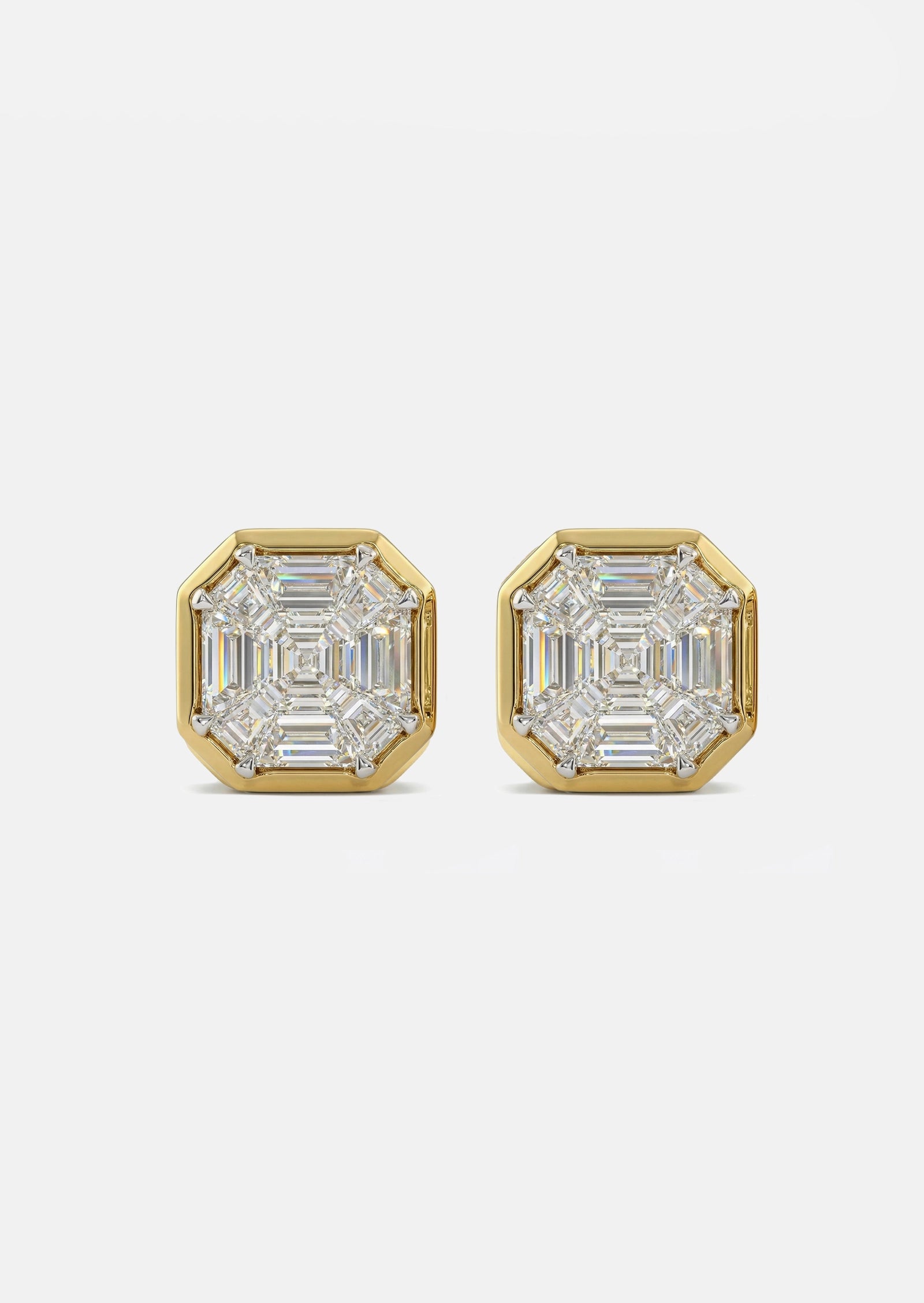 The illusion of these 9 invisible set diamonds are everything we want in our diamond studs. Flat enough to not hang out of your ear, and big enough to swoon over.